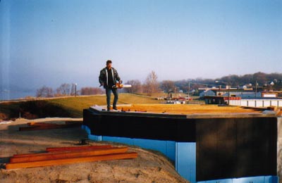 The engineering firm of Willett Hofmann and Associates arrived on the 16th to make sure the base of the concrete substructure was level.